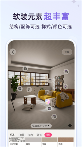 3、真实场景映射:支持将虚拟设计导出为平面图或3D效果图,辅助真实家居软装参考。