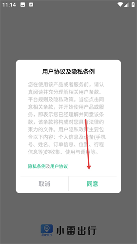 1、打开小雷出行APP阅读协议后点击同意,进入首页,选公交地铁功能,开启出行服务体验。