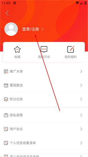1、打开app,进我的页面,点击登录注册,登录后就可以阅读当地的热点新闻事件。