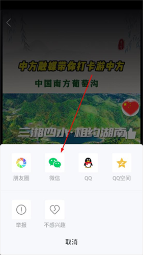 4、选择其中一个分享平台点击即可将内容分享出去,也可进行举报、标记不感兴趣等操作,管理内容推送。