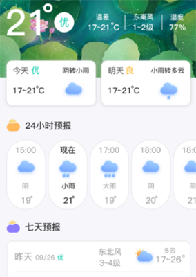 2、点击天气可以查看近两天的天气预报,实时提供状况。