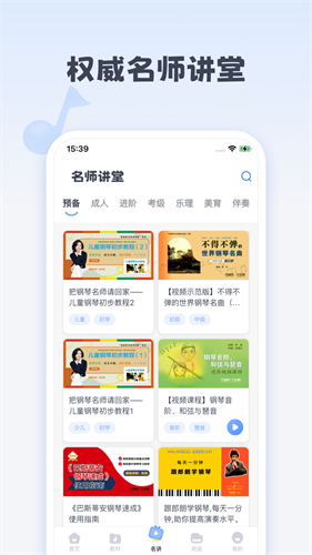 5、课程内容丰富全面,包括钢琴考级教程、巴斯蒂安教材以及各类明星课程。