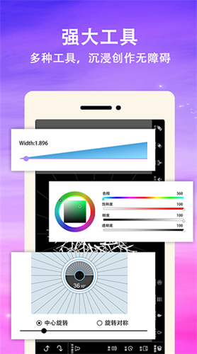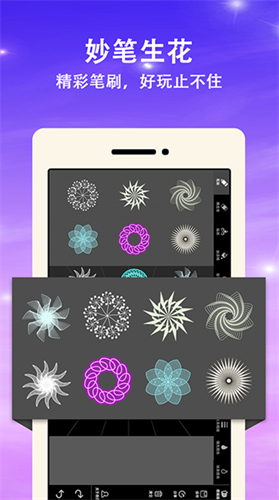 曼达拉绘画艺术软件是一款非常专业的绘画编辑软件内容,多轴对称画图软件,适合广大的用户培养自己的艺术美感和绘画的美学,主要用于制作曼达拉图案绘画作品,用户可以在这里来根据自己的想法来完成绘画,其特点是拥有非常对称的特性,可以用于生活中的图标设计等方面;这里给用户汇总海量图案贴纸资源,它还将这些图案贴纸按照不同的类别进行划分,用户在制作设计过程中能按照这些分类查找,这样能提高自己找到需要设置元素的效率;它还为用户设置许多强大的工具应用,利用这些工具可以在原模板中转换出更多不同形状的样式,还能对原图进行色相调整,能根据需要的设计效果自由调节成多彩的图标形状,这些工具让用户获得无障碍的设计体验。