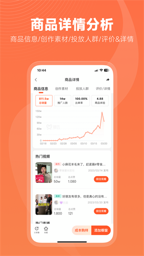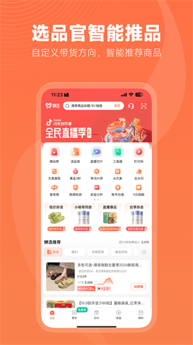 2、免费无广告工具链覆盖选品、创作、运营全链路,提升带货效率。