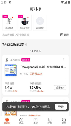 4、盯对标功能,可以帮助你分析其他主播的卖货情况。