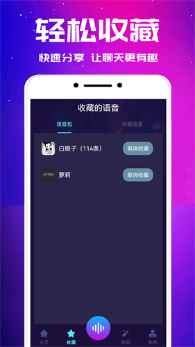 3、应用的首页展示了各种有趣的语音包,用户可以轻松点击试听,找到最适合自己的声音。