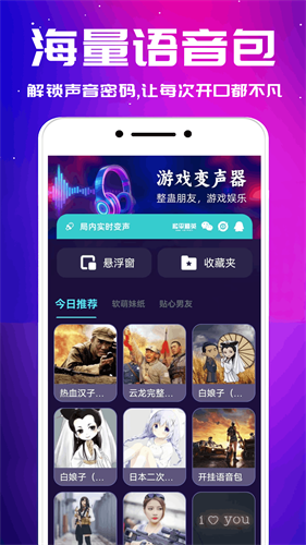 给你在游戏聊天中增加更多乐趣,吃鸡、王者等热门游戏,日常聊天、清唱合集,总有一款变声器语音包适合你,好玩有趣的变声软件,让你感受不一样的乐趣。