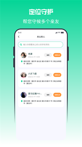 帮助用户对亲友来实现安全护航,从而可以省心关注,实时进行安全守护。