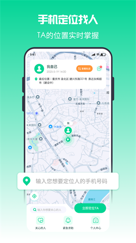 速查定位找人app是一款专为家庭守护与出行安全设计的轻量化位置共享工具,软件以极简操作实现精准实时的位置追踪,用户只需获得授权,即可随时查看亲友的当前位置、移动轨迹、经纬度坐标及详细地理信息,地图界面清晰直观,刷新流畅无延迟。更关键的是,应用内置一键紧急求助功能,当用户在外出途中遭遇突发状况,可迅速向预设联系人发送求救信号并附带实时定位,大幅提升应急响应效率。速查定位找人app还特别强化了应急场景下的响应能力,集成SOS紧急呼叫功能,触发后自动发送包含当前位置、时间戳和周边环境信息的通知,便于亲友第一时间介入援助,操作逻辑贴近直觉,老人小孩都能轻松上手。在快节奏且充满不确定性的出行环境中,它默默扮演着隐形守护者的角色,让每一次出发都多一份踏实。