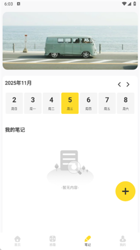 4、在笔记页面中可以新增你的笔记,也可以随时在线查看最新的笔记信息。