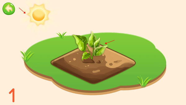 4、经过太阳的照射,土地上长出来一颗植物,用动画的形式来叫小孩数字1.