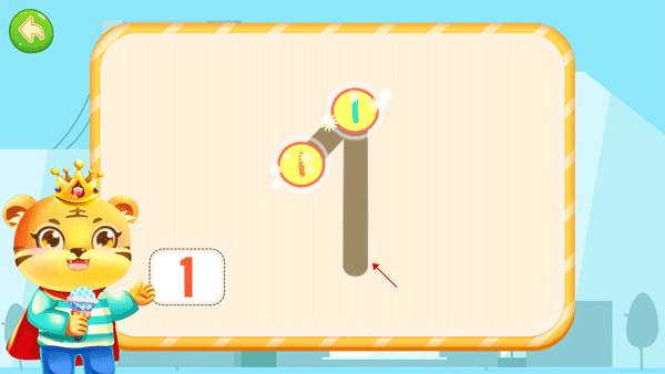5、下面就进入到书写阶段,跟着提示来学写数字,后面还有找寻数字1.归类数字1等方式来教小孩学习数字。