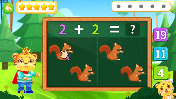 2、趣味闯关模式,将数字认知、加减法融入故事场景,搭配卡通角色引导保持学习专注力。