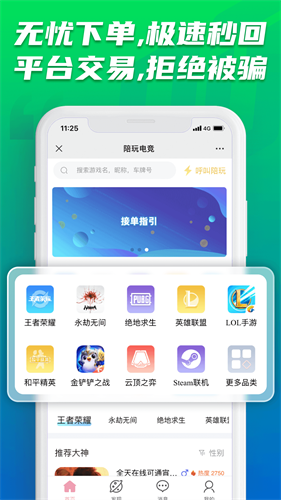 5、享受轻松游戏的乐趣,陪玩电竞大神云集,提供贴心游戏陪玩服务。