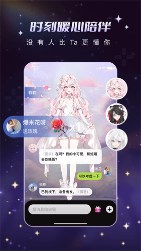 用户也可以享受专属的私人陪伴,就可轻松表达自己,实现跨时空的恋爱聊天,轻松恋爱。