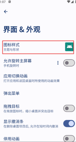 3、接着在界面/外观板块,找到图标样式,点击进入图标样式管理板块。