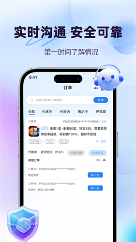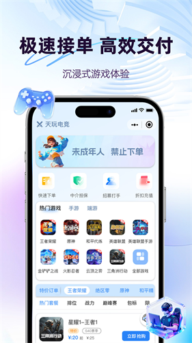 3、高手快速接单:为技艺高超的玩家提供便捷的接单和展示平台。