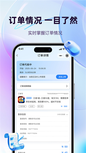 4、订单跟踪:实时跟踪代练进度,让玩家随时了解服务状态。
