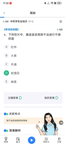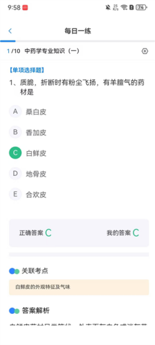 2、,点击进入后即可开始学习刷题,选择答案后还会给出答案解析和关联考点。