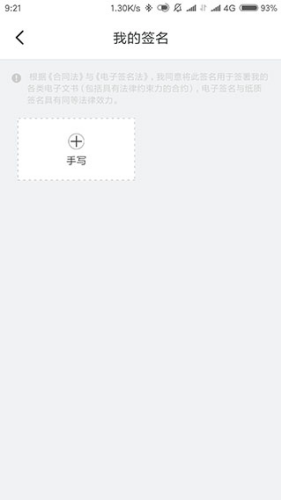 2、进入我的签名中,点击+手写,可以增加一个或多个手写签名。