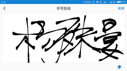 3、用手指进行签名后,查看是否清晰,不要连笔,完成后点击使用。