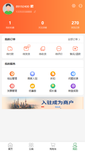 6、订单管理服务:用户可随时在线查看订单状态,实时掌握商品物流信息,便捷高效管理个人购物订单。