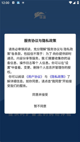 1、打开软件后,请先阅读用户协议和隐私政策,点击同意后进入首页。