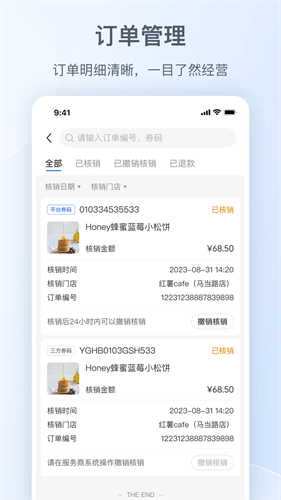 2、闭环经营:从下单、核销到订单管理、数据看板、资金结算形成完整链路。