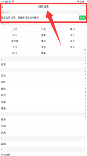 1、在切换城市页面选择目标城市,可授权定位获取精准推荐。