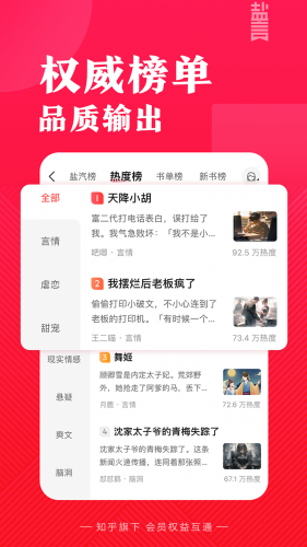 言情、脑洞、悬疑等 180+ 品类几十万本好故事,畅读近 130000+ 本知乎互通优质电子书。
