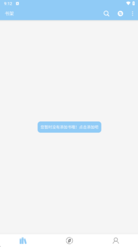 1、下载并安装好软件,进入软件首页,就是软件的书架板块,可以点击添加书籍。