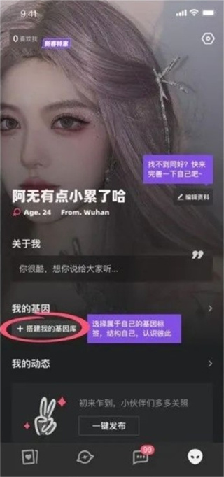1、个性化基因标签系统,用户可自定义50+兴趣标签精准匹配同频伙伴,构建独特个人文化画像。