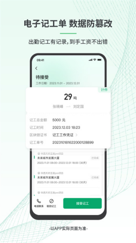 2、一键记工单,每天的所做的工作随时进行记录,了解自己每日工作情况。