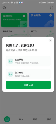 3、进入软件后点击实名认证后,加入班组,确保自己的工作信息被记录。