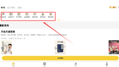 1、平台收录大量优质听书资源,涵盖多领域知识内容,所有课程均免费向用户开放,无限制随时收听,享受便捷高效的学习服务。