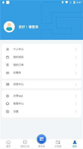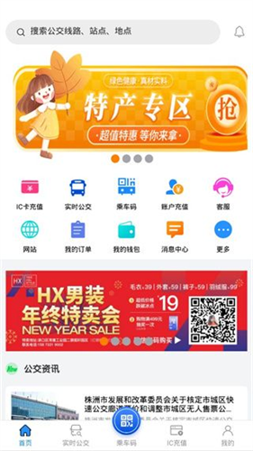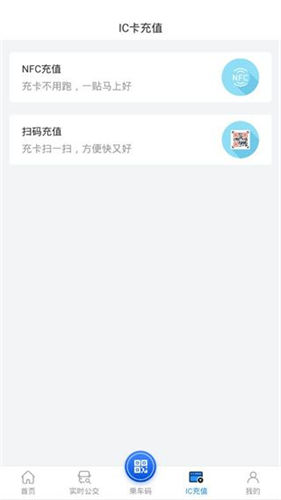 3、在首页我们可以看到有IC卡充值、实时公交、账户充值等服务。