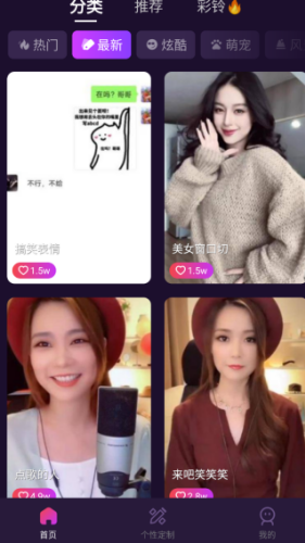 2、种类丰富:炫酷、靓妹、影视、抖音等各色各类来电素材,总有一款属于你的菜!