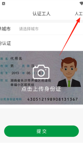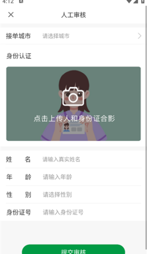 4、在人工审核中填写认证信息,上传认证照片,然后点击提交审核,等待审核通过即可。
