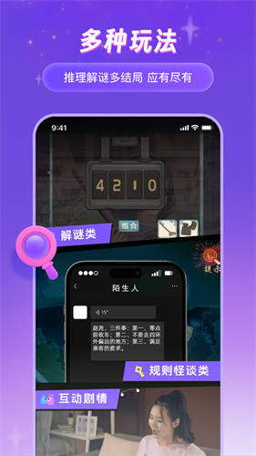 多结局剧情选择、推理解谜、规则怪谈、真人影像、地图探索,各种玩法应有尽有!社恐星人与社交达人各自的福音。