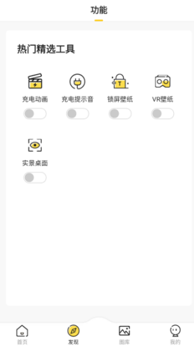 2、在发现板块,大家能看到很多实用功能,充电动画、充电提示音轻松开启。