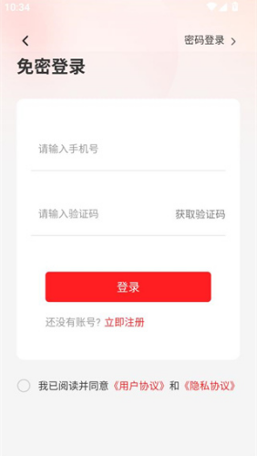 2、进入登录页面,输入手机号和验证码进行免密登录,开启本地资讯探索。
