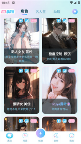 1、在遇见模块中可以看到丰富的角色,二次元、美女、帅哥等。