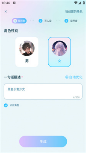 3、如果没有喜欢的角色或想要独特一点的那就创建角色,定制外观、声音等。