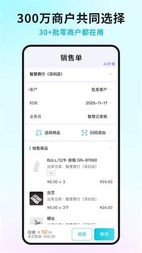 2、无论在店内,还是外出谈业务,都可以随时开单;