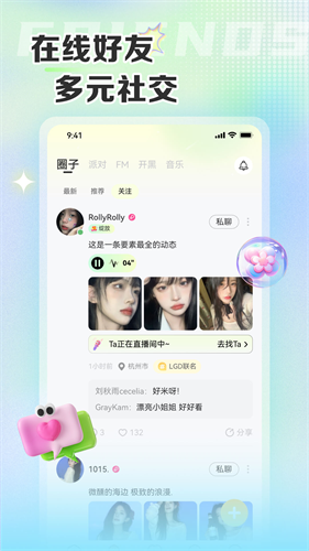 支持直播交友,可以通过直播聊天互动的方式结交很多友人。