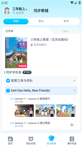 4、阳光学App全面实现教材同步点读,课本内容一点即读,发音标准、播放流畅,支持单句复读、语速调节,真正做到“哪里不会点哪里”。听读结合,强化语感,提升学习专注力与理解力。