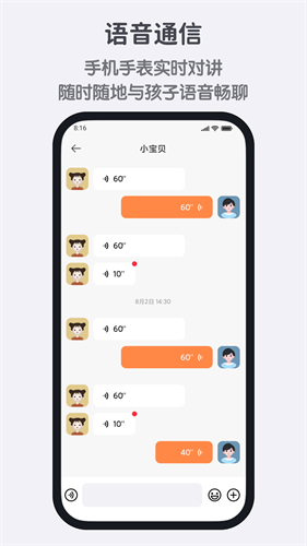 2、语音通信:手机手表实时对讲, 随时随地与孩子语音畅聊。