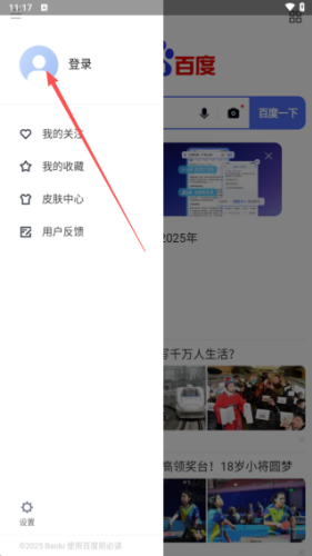 2、在这里,有我的关注、我的收藏、皮肤中心等功能,点击登录。