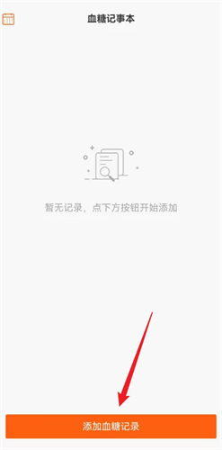 1、进入到血糖记事本页面后,找到并点击“添加血糖记录”。