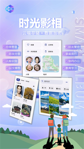 强大且智能的人脸识别功能,帮助你能快速找到自己要看的照片,还能通过文字搜图。
